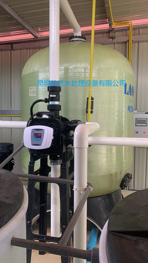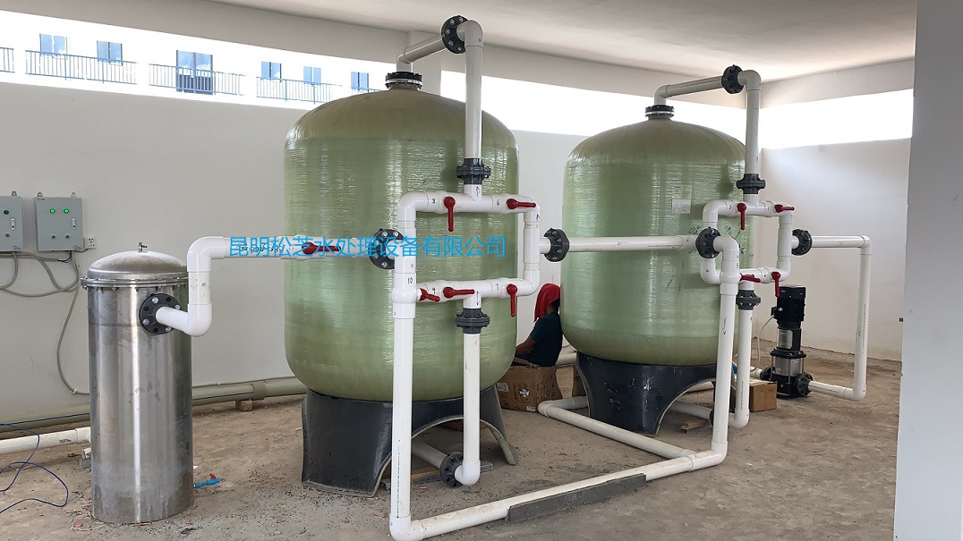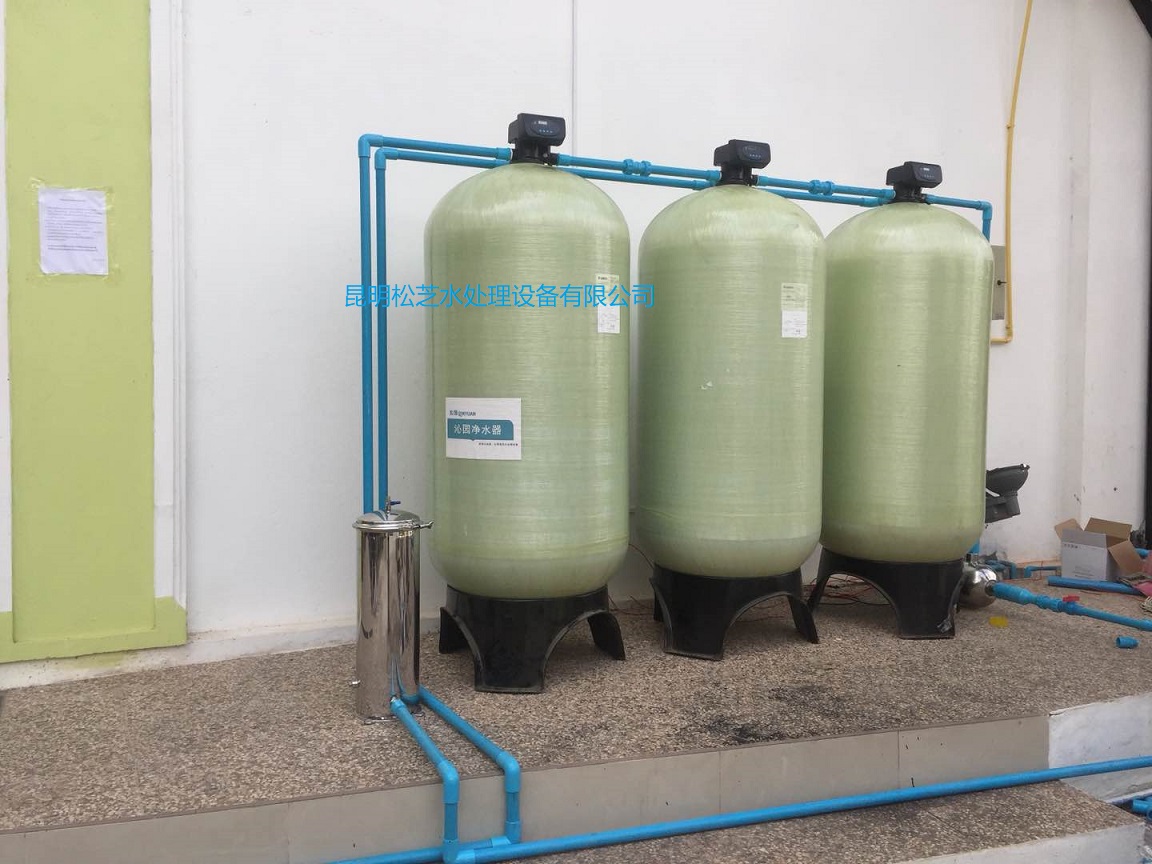 地下水、水庫水中含有多種雜質(zhì),如懸浮物、膠體、重金屬、有機(jī)物、鐵銹和無機(jī)鹽等,為保證水質(zhì)達(dá)標(biāo),則必須先去除水中的懸浮物、膠體、有機(jī)物等,使反滲透的進(jìn)水達(dá)到要求,故本系統(tǒng)設(shè)置多介質(zhì)過濾器+活性炭過濾器+軟化器+殺菌作為原水處理系統(tǒng)。本處理系統(tǒng)包括原水箱、原水增壓泵、多介質(zhì)過濾器、活性炭過濾器、離子交換軟水器、殺菌設(shè)備、凈化水水箱及反洗系統(tǒng)。