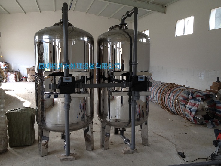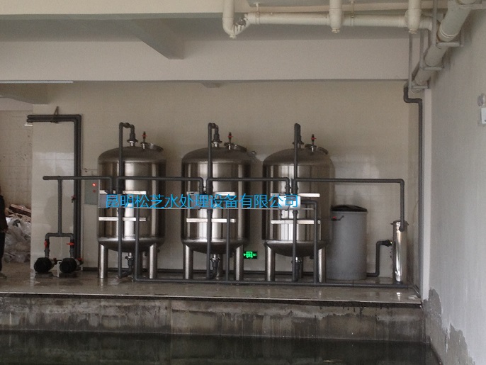 地下水、水庫水中含有多種雜質(zhì),如懸浮物、膠體、重金屬、有機物、鐵銹和無機鹽等,為保證水質(zhì)達標(biāo),則必須先去除水中的懸浮物、膠體、有機物等,使反滲透的進水達到要求,故本系統(tǒng)設(shè)置多介質(zhì)過濾器+活性炭過濾器+軟化器+殺菌作為原水處理系統(tǒng)。本處理系統(tǒng)包括原水箱、原水增壓泵、多介質(zhì)過濾器、活性炭過濾器、離子交換軟水器、殺菌設(shè)備、凈化水水箱及反洗系統(tǒng)。