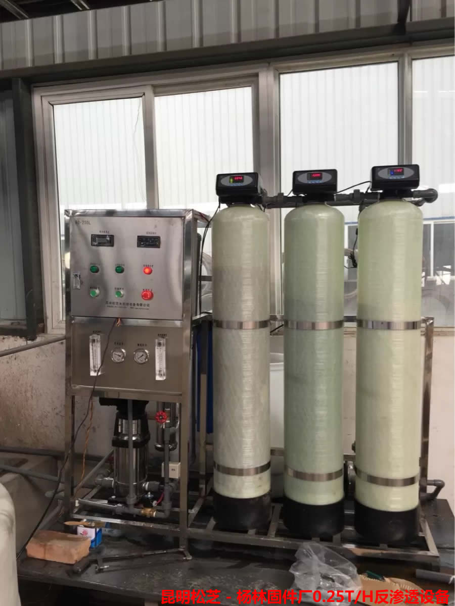 楊林固件廠0.25T/H反滲透設備 + 預處理系統(tǒng)