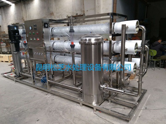 反滲透過程是利用半透性卷式膜分離去除水中的可溶性固體、有機(jī)物、膠體物質(zhì)以及細(xì)菌病毒。原水以一定壓力通過反滲透膜,水透過膜的微小孔徑,經(jīng)收集后得到純水。水中的雜質(zhì)在截留液中濃縮并被排出。RO膜可以去除原水中98%以上的溶解性固體,99%以上的有機(jī)物及膠體物質(zhì),以及幾乎100%的細(xì)菌。