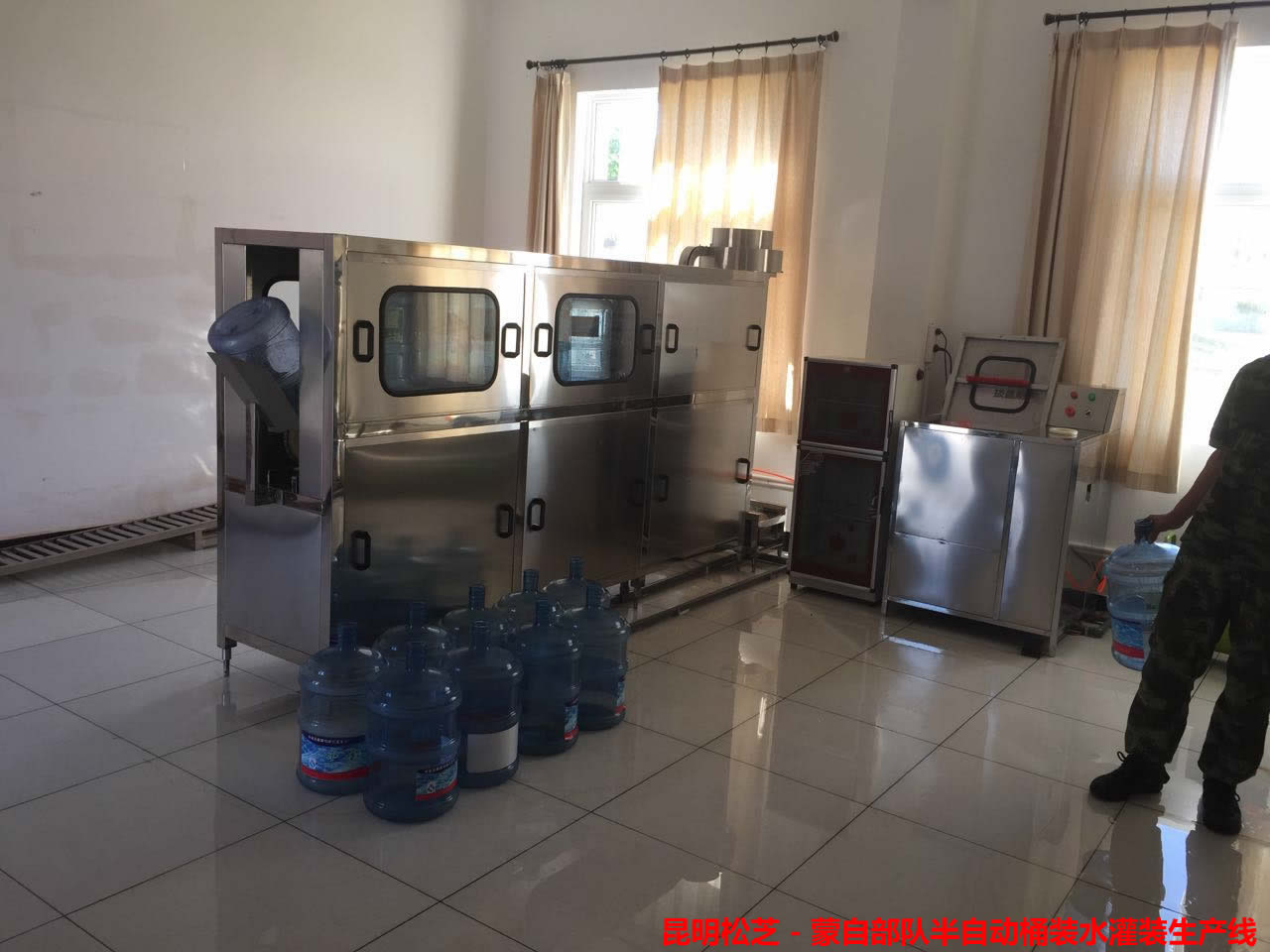 昆明部隊(duì)用半自動(dòng)式每小時(shí)150桶桶裝水灌裝設(shè)備